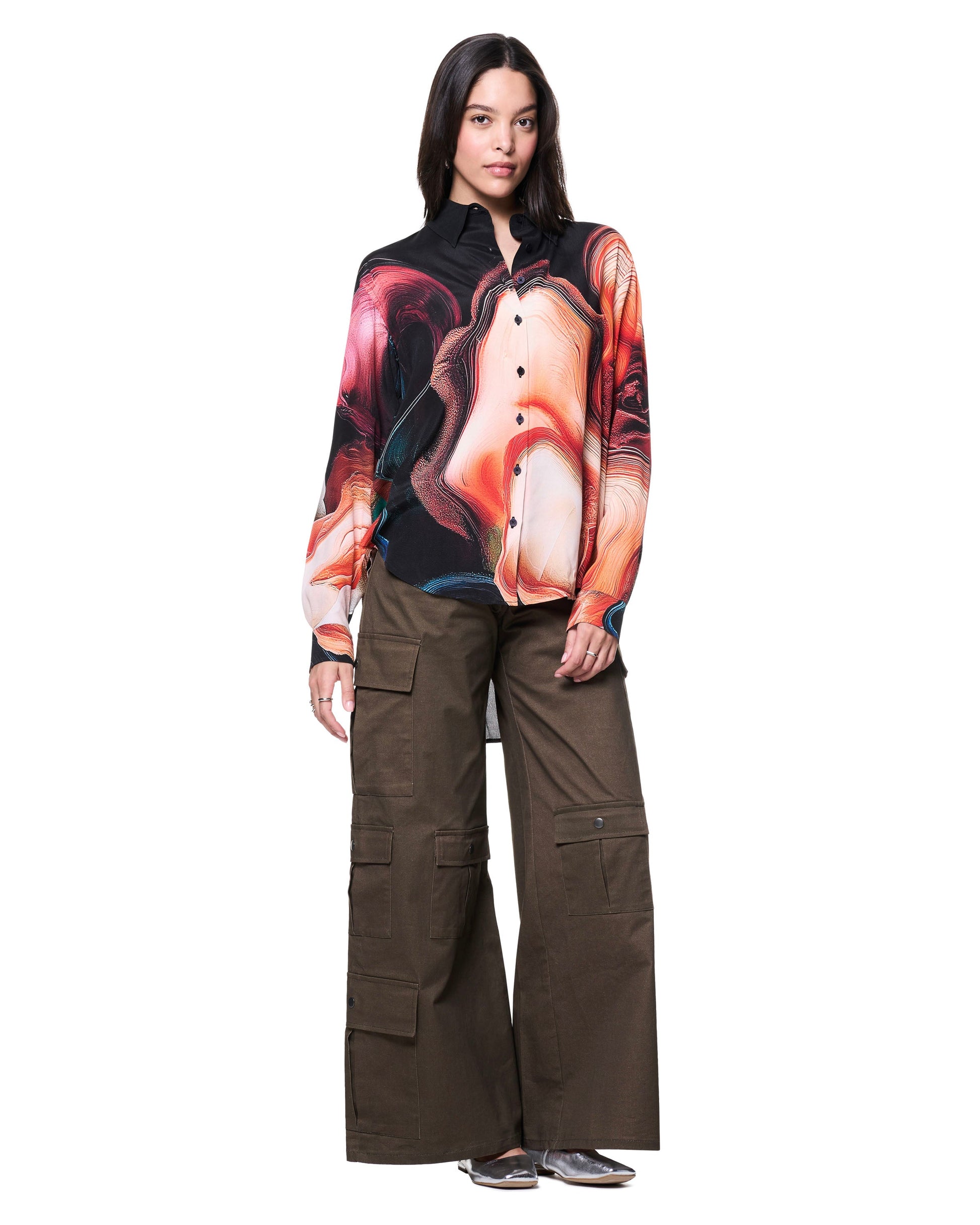 THE KIT's Annie Shirt is a luxurious, oversized button-front shirt with tailored back shoulder yoke and inverted pleat for additional fullness. Order true size for look similar to the one on the model.